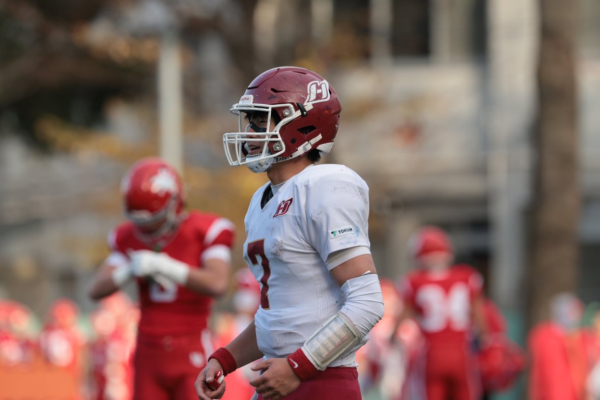 この四年間を振り返ってみると、非常に充実していたなと感じています。正規ポジションではないながらも、1年生のころからほんの少しではありますが試合に出させていただき、2年生からはQBのスターターとして出させていただきました。さらには、ラストゲームである日本大学戦では、不本意ながらも(笑)念願のWRというポジションで出場することもできました(見るに堪えないパフォーマンスでしたが)。
